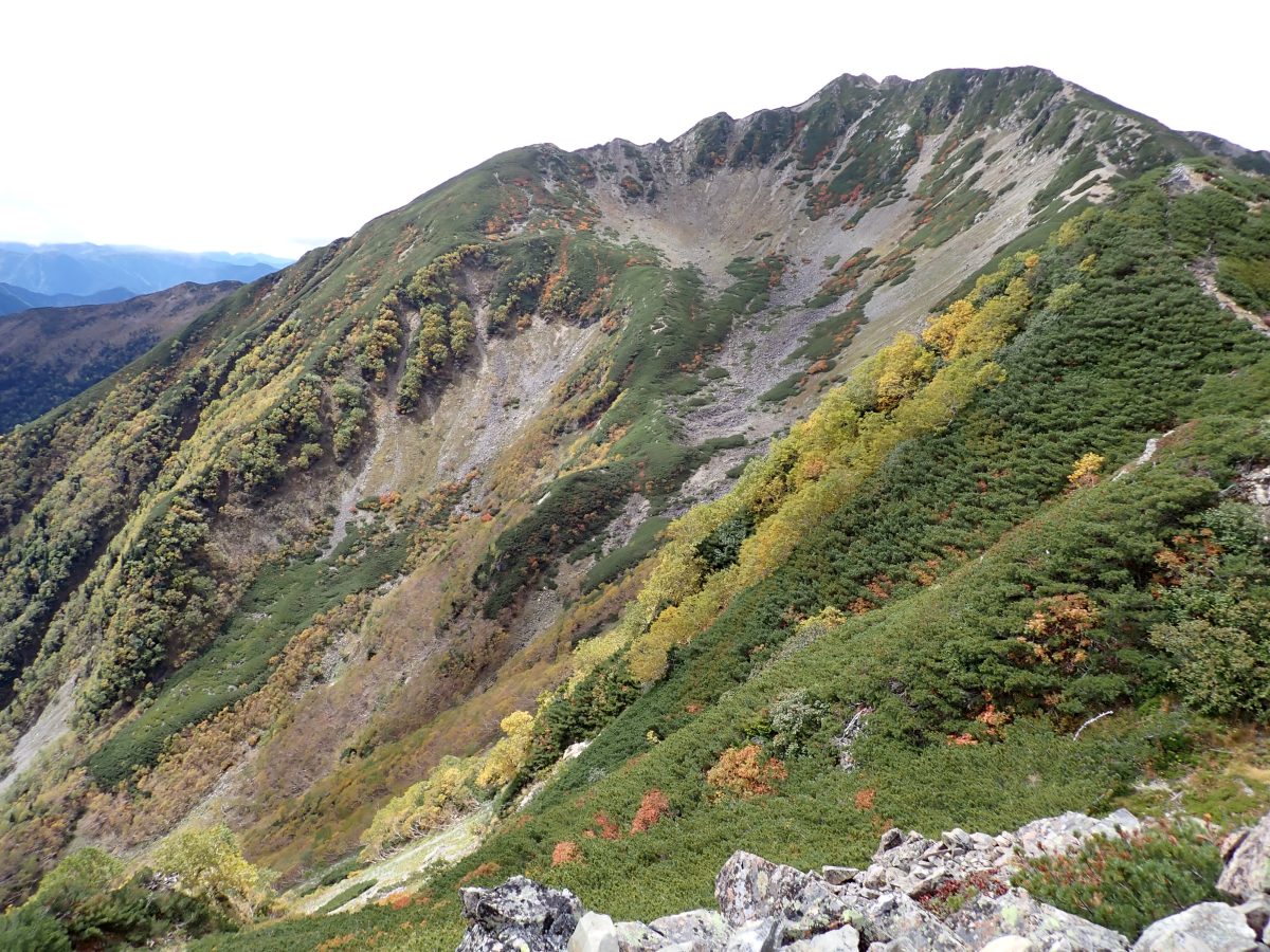 馬の背からと小仙丈尾根からでは仙丈ヶ岳の形も全然違って見えるので、馬の背ヒュッテから歩き始めて山頂を踏んだら、馬の背を折り返すのではなく小仙丈尾根のほうへ降りるという歩き方もおすすめだ。