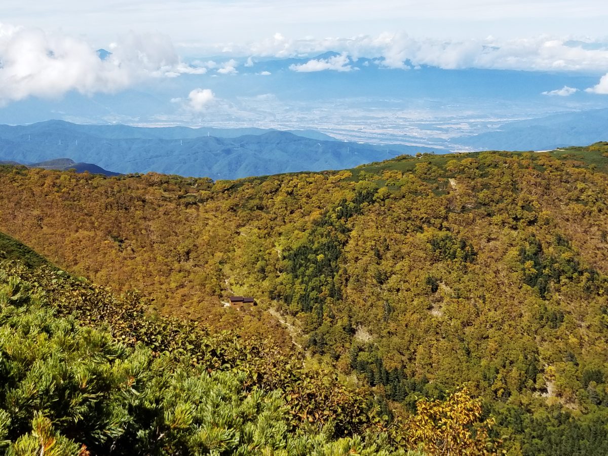 甲斐駒ヶ岳と並び、南アルプス北部を象徴する山として知られる仙丈ヶ岳。馬の背ヒュッテは、仙丈ヶ岳山頂へのルートのひとつである藪沢新道を登り詰めた先、「馬の背」と呼ばれるなだらかな尾根の少し手前の樹林帯に建つ山小屋だ。周辺には、夏は高山植物、秋はダケカンバなどの紅葉が広がる。