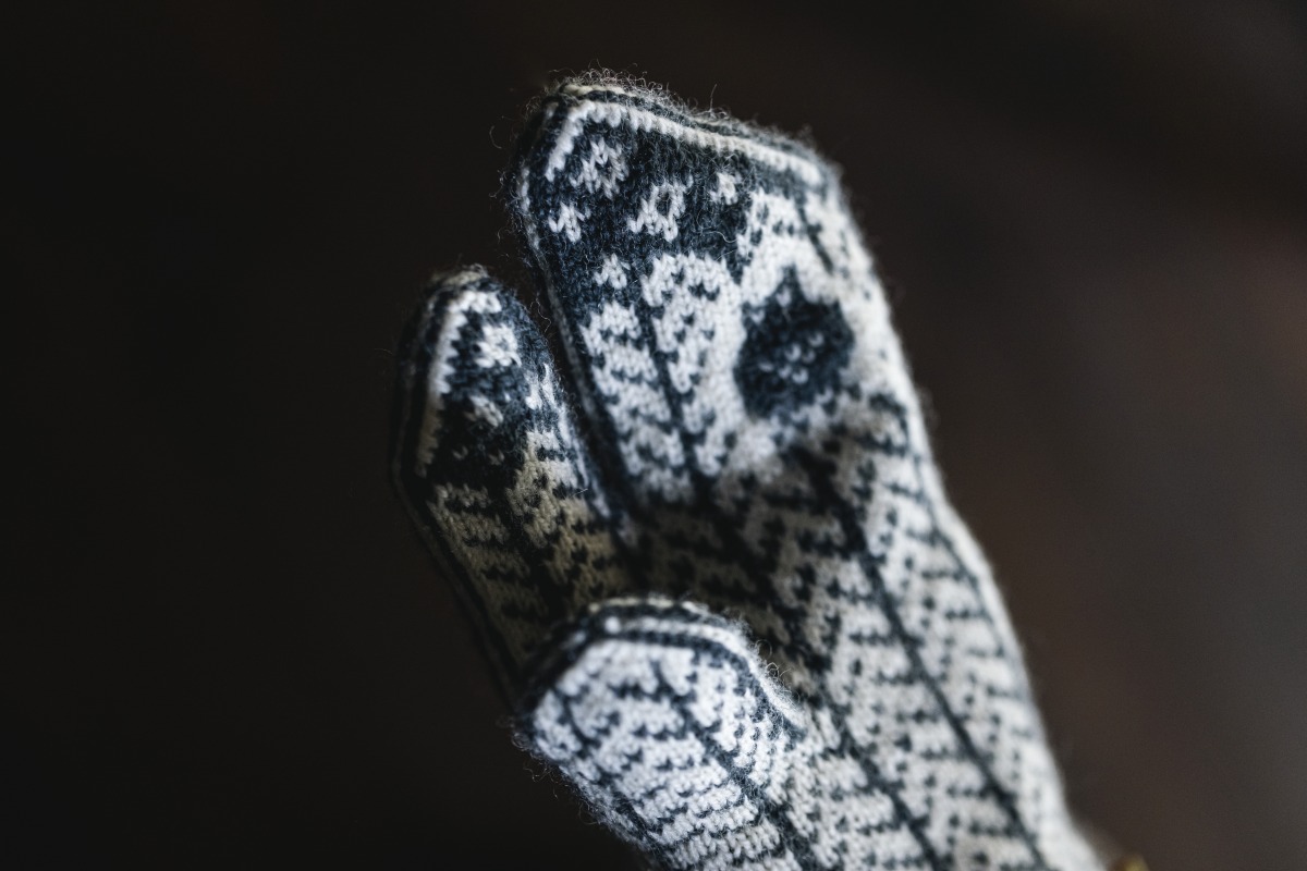北アルプス山麓の長野県大町市を拠点とする、編み物作家の志賀純さん。直径2ミリほどの棒針を器用に使い、繊細な模様のミトンを日々編み続けている。「編み物の専門誌に載っていたラトビアミトンにひと目ぼれして、独学作り始めました」ラトビアでは昔から手仕事が盛んでさまざまな伝統工芸が育まれてきた。ミトンもそのひとつだ。