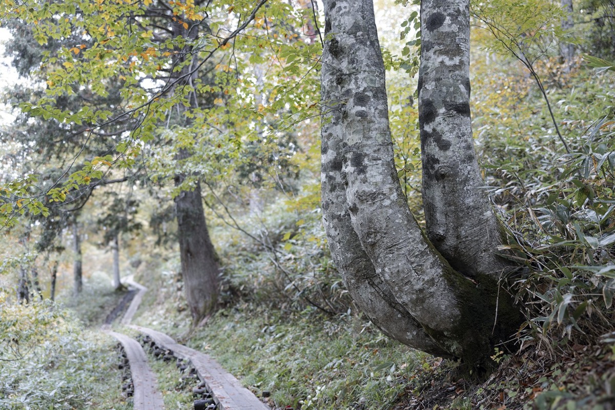 ブナやカラマツ、ダケカンバ、シラカバなど、多様な木々が葉を広げる山ノ鼻エリアの森では、新緑や紅葉など季節ごとの美しい風景を楽しめる。雪解けの時期を迎える6月ごろから10月半ばまでの半年間に、四季の移り変わりがぎゅっと凝縮されているため、訪れる時期を少し変えるだけで異なる森の表情に出合えることも、特徴のひとつだ。