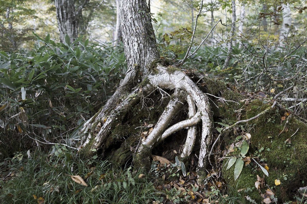 手つかずの自然が守られてきた尾瀬の森では、多くの倒木更新を見ることができる。倒木更新とは、倒れた枯木の上に新たな世代の木が育つこと。木が倒れた場所に光が差し込み、朽ちた木が養分になって新しい植物が芽生える……。そんな森の世代交代を物語る風景だ。
