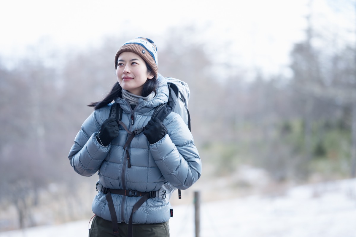 「ふんわりしていて動きやすいです。ダウンジャケットって休憩時に着るイメージがありますが、このダウンなら行動中も着ていたいなって思えますね。」(鈴木さん)