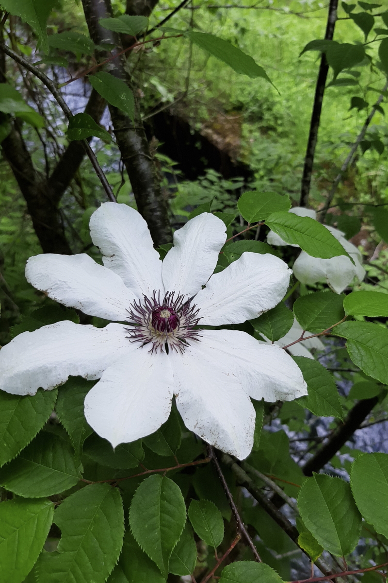 「セレブおばさまならいいぜ。ウヘヘ」。そんな汚らわしいオトコがおりましたら、放っておきましょう。なんていっても、カザグルマの魅力はその清楚さにあるんですから!!カザグルマは花色が白~薄紫色で、中心の雄しべが日を追うごとに開いていくのもチャームポイント。そして花弁に見える大きな白い花びらは、キンポウゲ科にありがちなガク片。このガク片がダンサーのように艷やかにうねります♪……あ、いま自分の汚らわしさに気づきました。