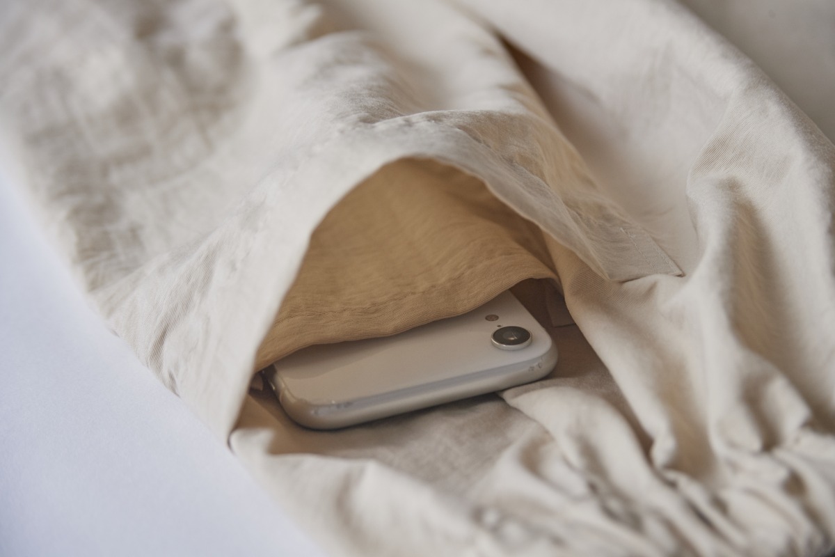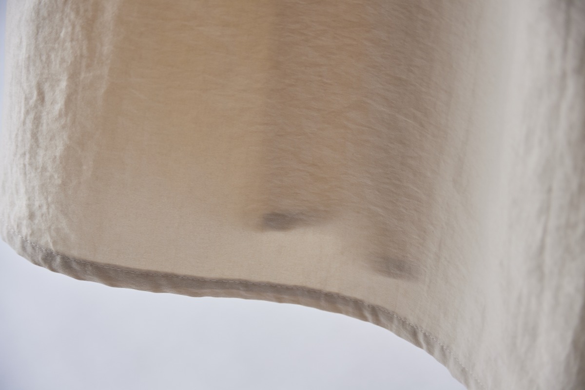 カラーはクロユリ(チャコールグレー)とヤマハハコ(ベージュ)の2色。クロユリは大人っぽく落ち着いた雰囲気に。ヤマハハコは少し透け感があり、光が当たると軽やかな印象になります。透け感が気になる人は中にスパッツなどを着用するのがおすすめです。