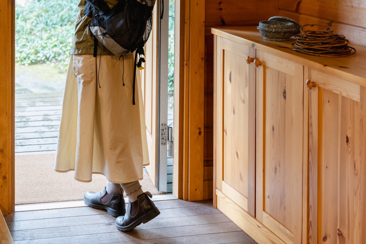 裾にかけて大きく広がっているので、山小屋内で着替えたいときにスカートを上から履けば目隠しのようにも使えます。