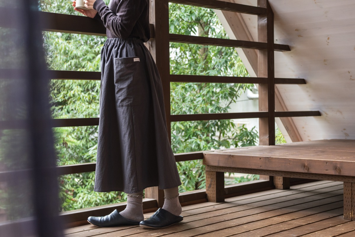 山からの下山後やアウトドア旅でスカートを履いて歩きたい、山小屋などの宿泊先でリラックスできるウエアがほしい。そんな編集部員の思いから、かわり芽初となるスカートが登場しました。