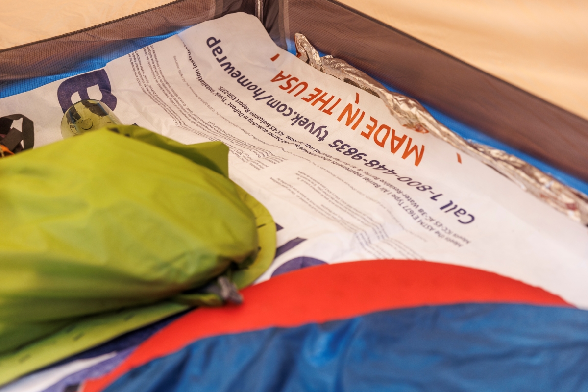 ント外でピクニックシートのようにも使えて便利。寝ているときにガサガサと音がするので、上にタイベックシートを一枚重ねています」。