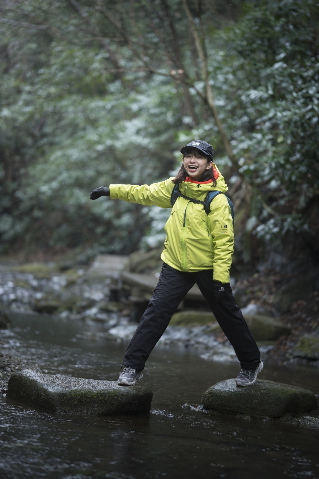 ▲一日目に歩いたのは、三浦半島最高峰の大楠山(241m)。あいにくの天気でも「雨の日の植物たちは生き生きして見える!」と楽しそうなミノリさん。写真は、大楠山の沢の水などが集まってできた清流、前田川。