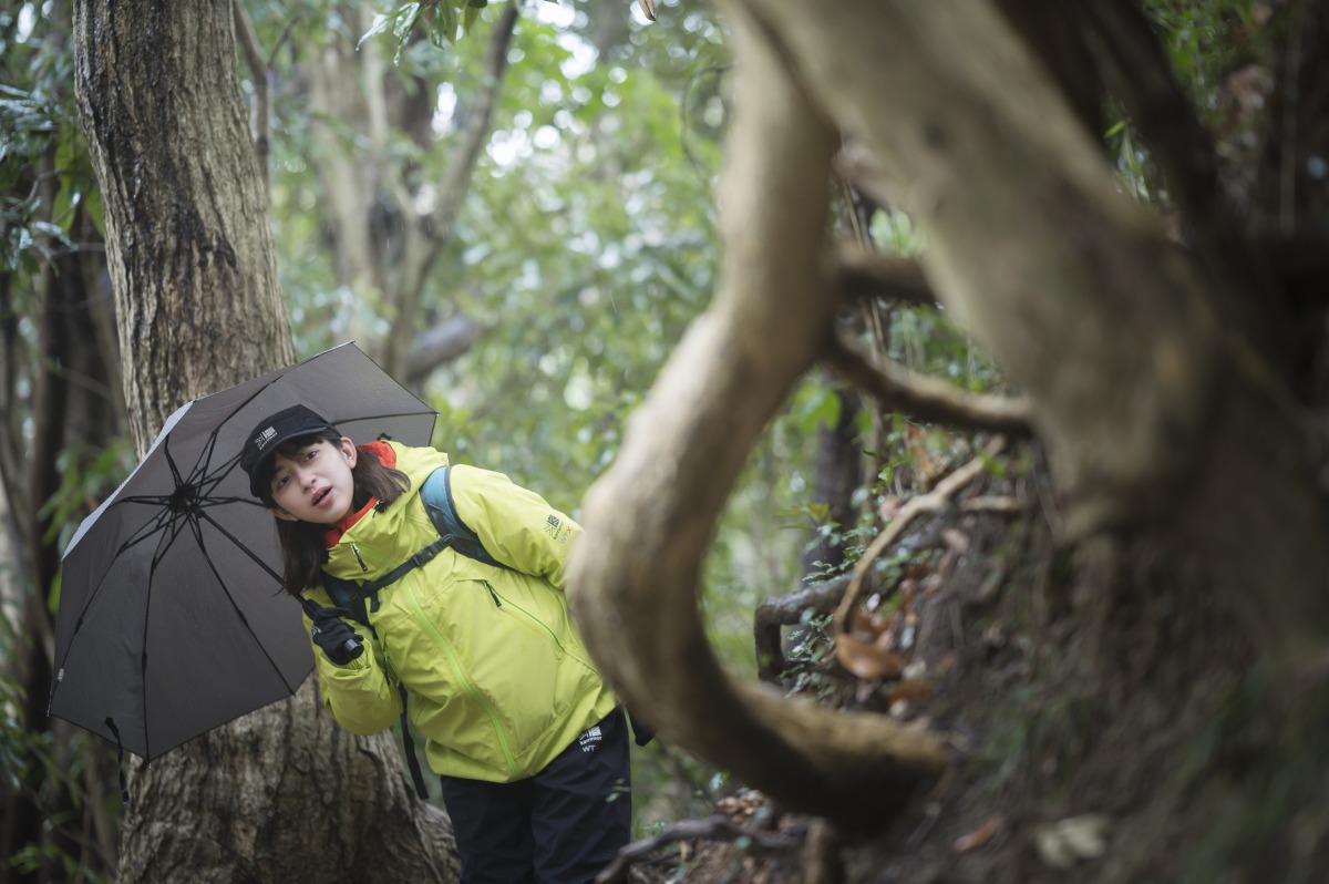 ▲おもしろい形をした木々や葉、花を見つけるたびに足を止めて観察。雨で遠くの景色が見えにくいぶん、近くの自然をじっくりと楽しむことができました。