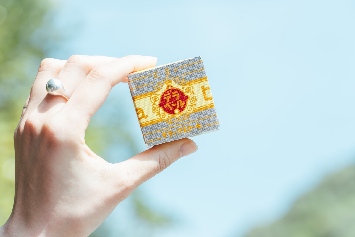 栗まんじゅうや最中などを販売する町の和菓子屋として、地元の人に愛されるお店。「田辺のお土産といえば」のデラックスケーキは、カステラ生地に自家製ジャムを挟み、ホワイトチョコでコーティング。その作り方や大きさは、いまも昔も変わらず、1日5,000個も売れる日があるほど人気。デラックスケーキをモチーフにしたマグネットはお土産に。