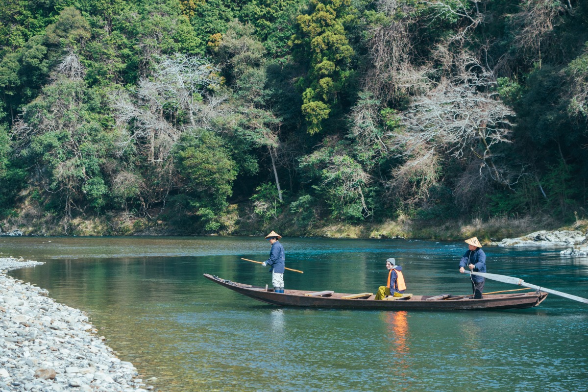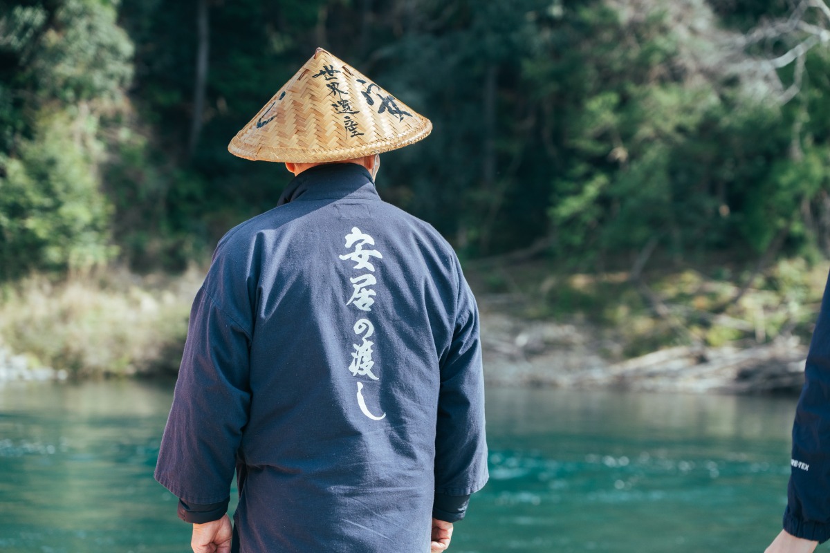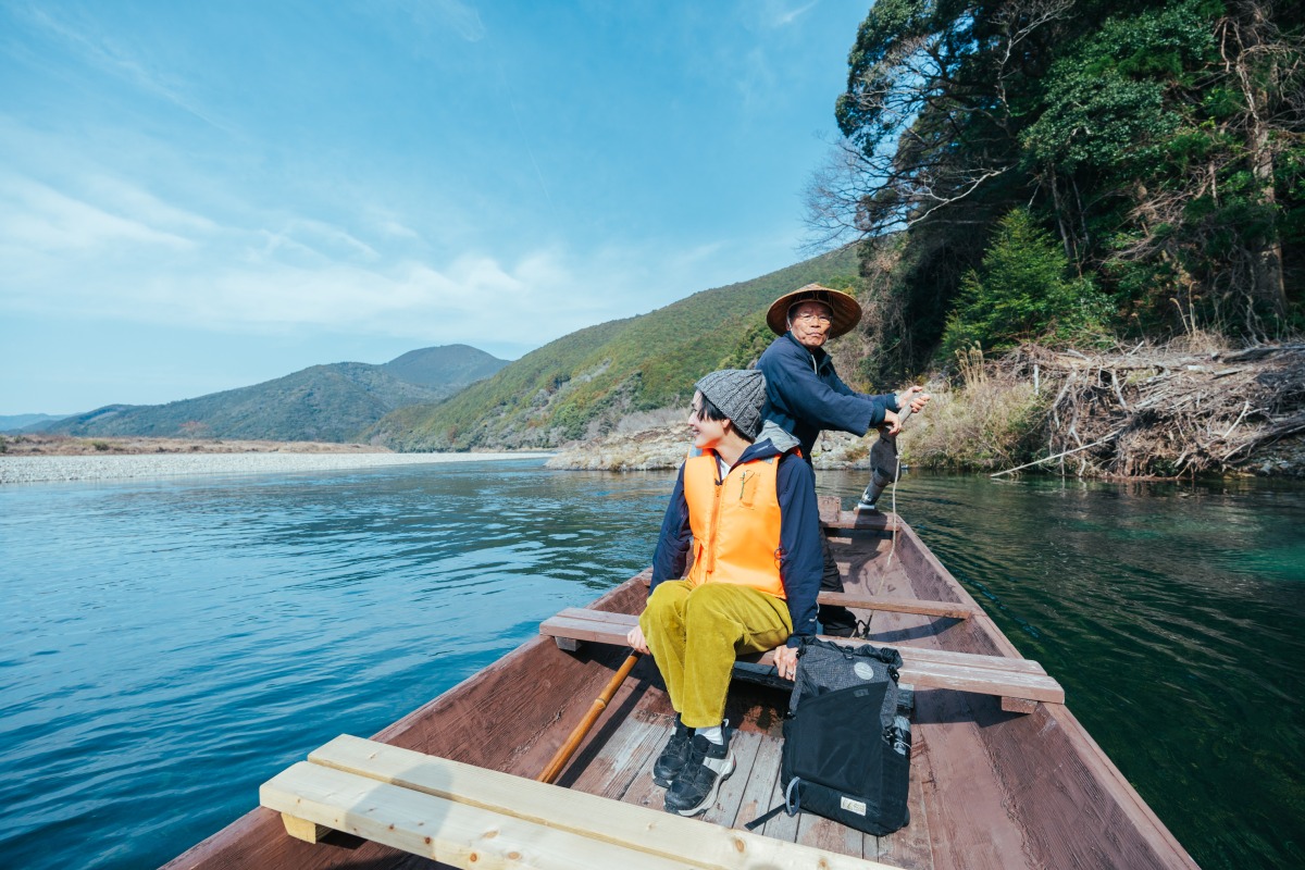大辺路の中で唯一、川を船で渡る「安居の渡し」。流れる日置川は、アユやアマゴなどの川魚が泳ぐ清流。かつて大辺路が生活道路だったころには、郵便配達員さんは毎日この川を船で渡りその先の集落に届けていたという。平成16年、熊野古道が世界遺産登録されて以降、大辺路を歩くハイカーも増えた現在。地元の船頭さんは7名。運航日は土日祝日のみ。完全予約制1人500円で利用できる。