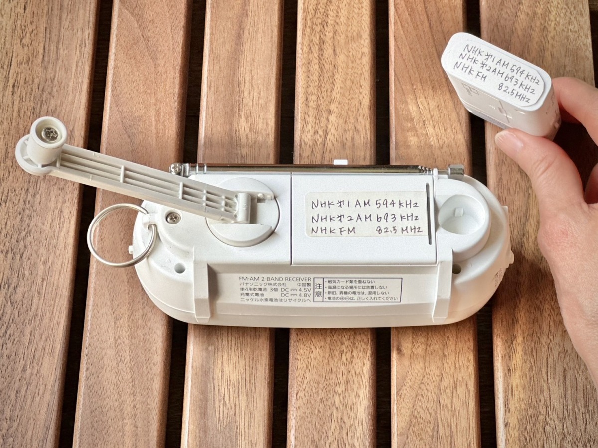 災害時はNHKラジオや地元情報に特化したコミュニティFMなどを確認。それぞれお住まいの地域により周波数が異なるため、マスキングテープなどに書いてラジオ本体に貼っておくと安心です。