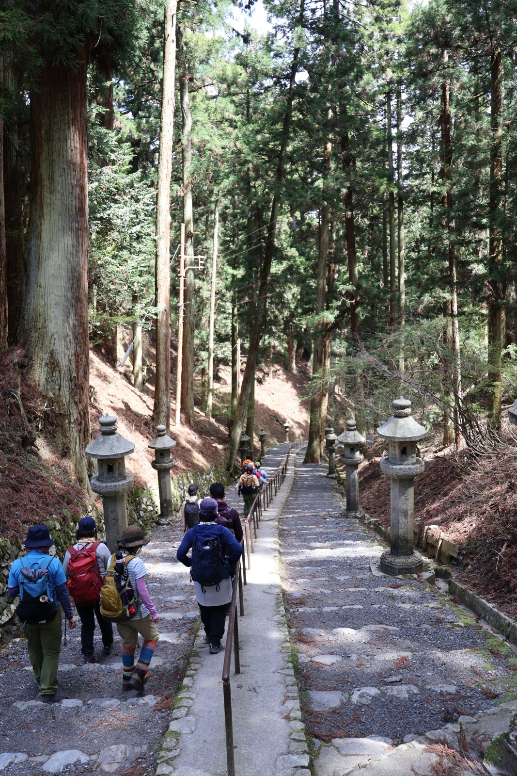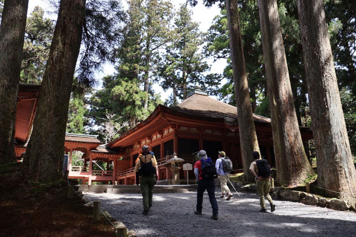 比叡山延暦寺に近づいてくるとトレイルの雰囲気も一変する。山全体が世界遺産といわれる延暦寺の境内には約100ものお堂があるという。また、比叡山の峰々をぬうようにめぐり礼拝する千日回峰行など、僧侶の修行の道としても古くから知られている。