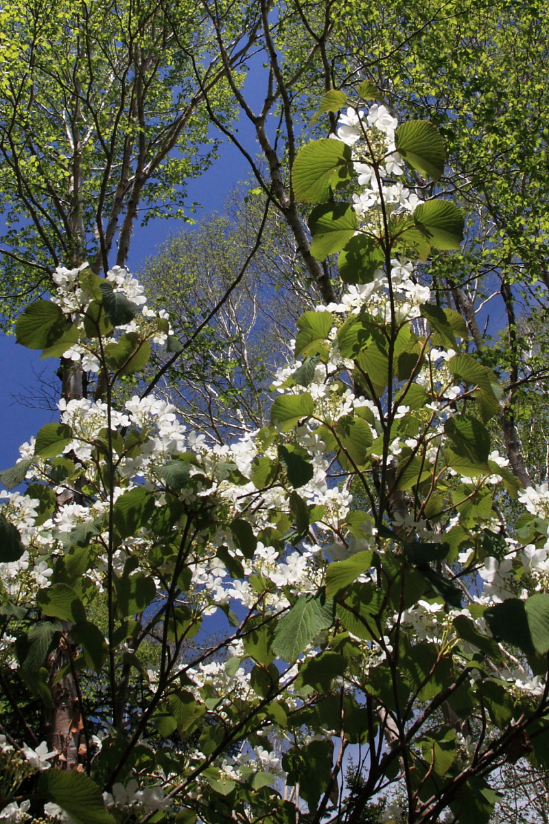 そう、この「飾り花」の存在が有名なんです。アジサイ同様なんですが、白い花はなんとニセモノ。中心部の星型の花がホンモノ(雄しべ雌しべアリ)なんです。なんでそんなオイタをするの!って責めたくなるところ。でもこれ、結構まっとうな理由があるそうで。要は「林のなかだと虫に見つけてもらいにくいから、白いポンポンを持っているんだよ!」ということらしい。ほうほう。すると上の写真なら満開、というわけですな。