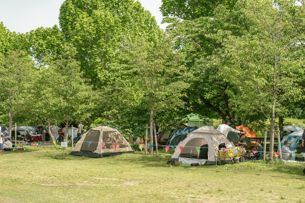 会場内にはデイキャンプができるエリアも。買い物をしながらキャンプを楽しめるとあって、開場後すぐにテントでいっぱいに。外ごはんを堪能したりお昼寝をしたりする人も多く、のんびりとした時間が流れていました。
