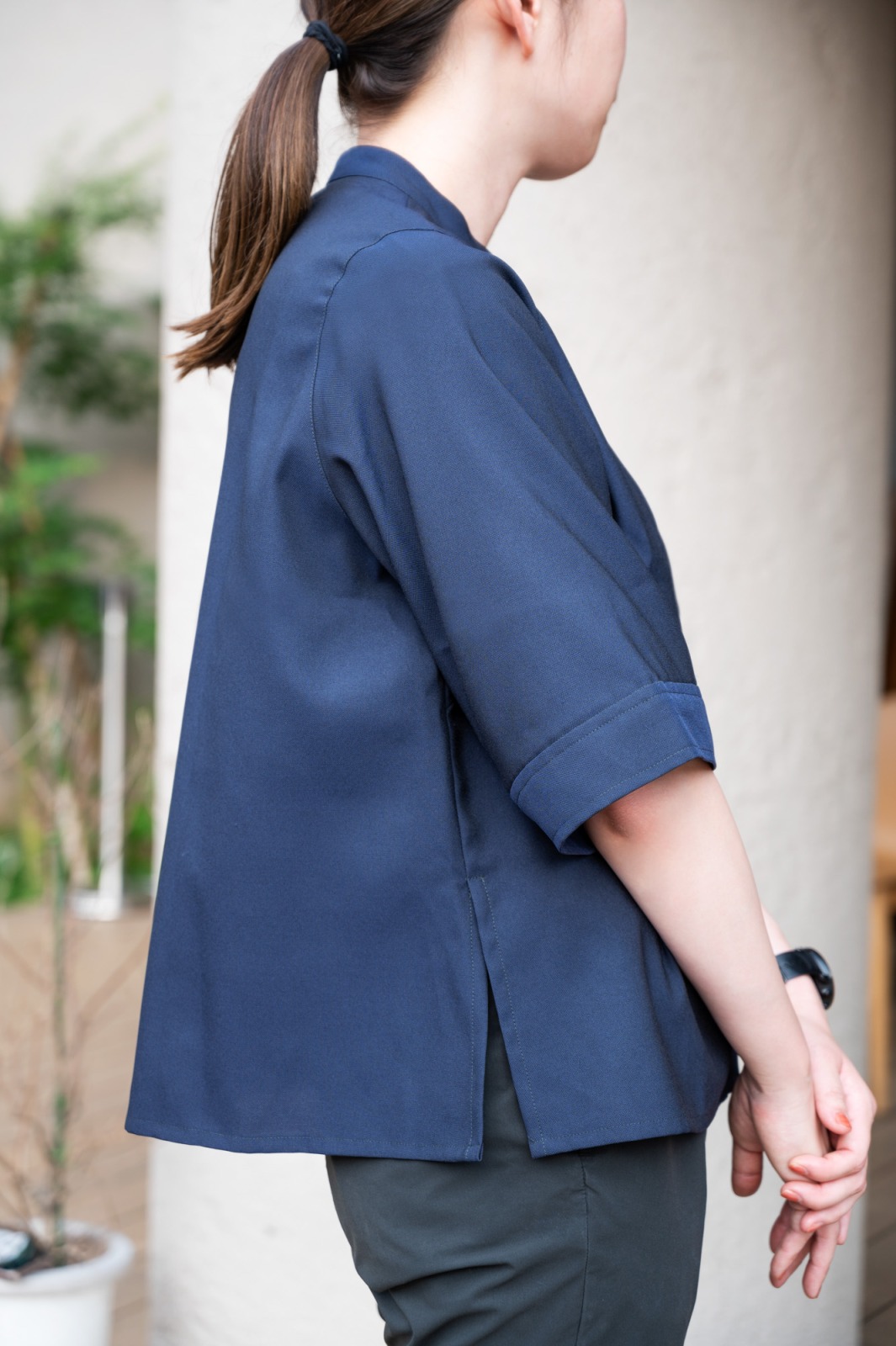 袖丈は、5分袖くらいの少し長めのつくりで、気になる二の腕をしっかり隠してくれるうえに、袖口が広く風が入りやすいので、涼やかに着用できるのも魅力。