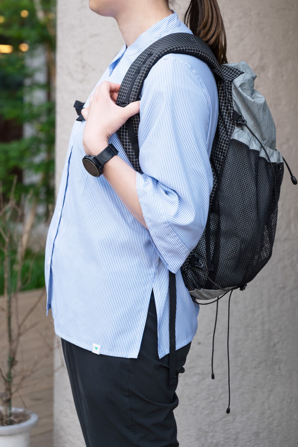 薄手で吸水速乾性に優れたポリエステル100%の生地は、さらりとした肌ざわりで、汗をかいてもベタつかず、快適な着心地。防シワ加工が施され、バックパックの中に入れてもシワになりにくいので、山旅での持ち運びも便利です。