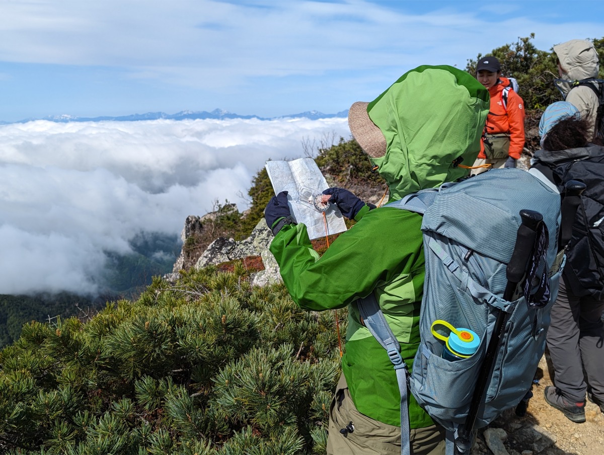 今回は登るまえに地図読みの基本を学び、1日目に金峯山小屋まで登り、夜は登山ガイドの渡辺佐智さんによる地図読み講座。小屋に宿泊した次の日にみずがき山荘へ向かいながら地図読みを実際に行なうプランでした。