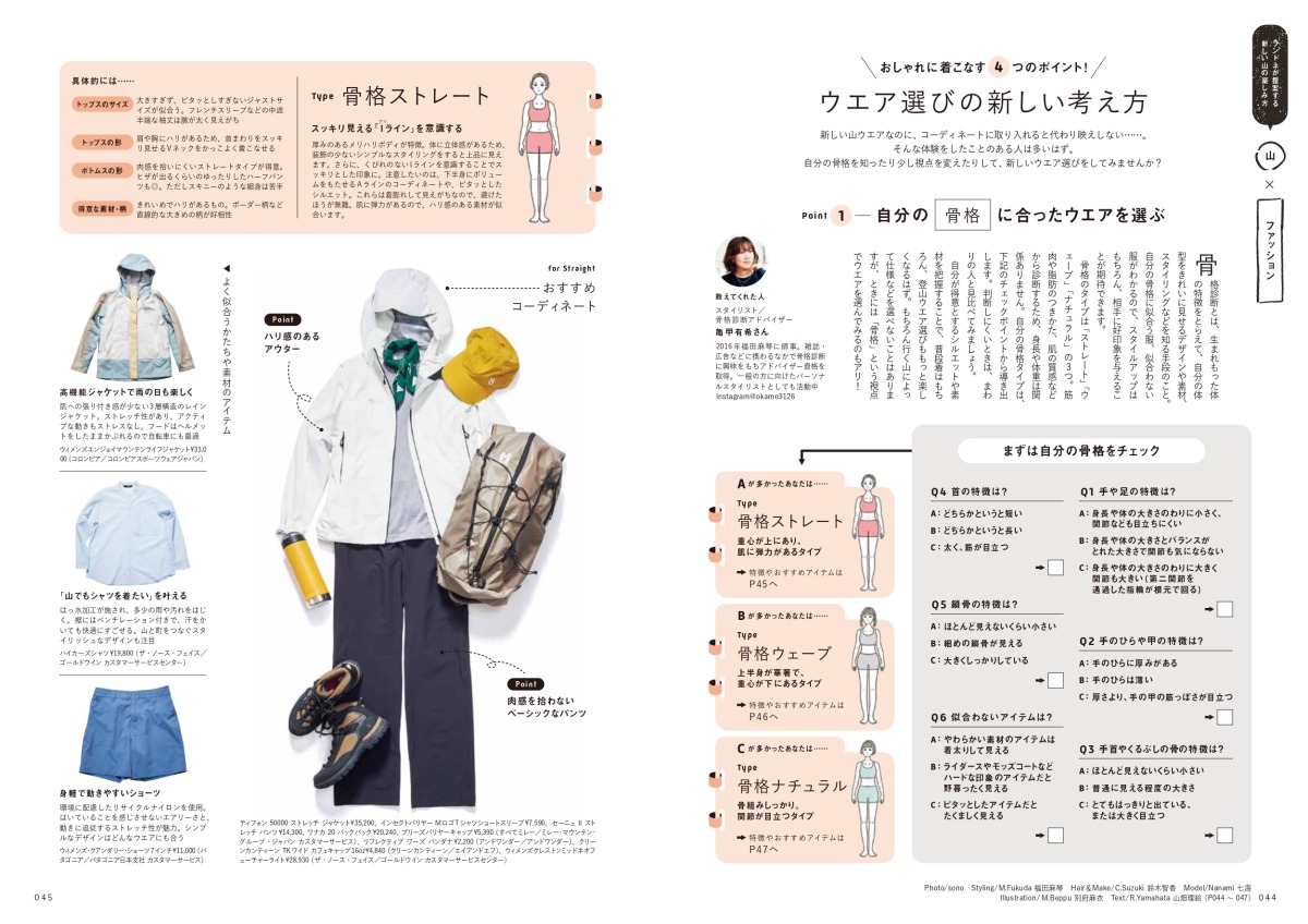 ▲お気に入りのアウトドアブランドの新作ウエアを着てみたけど、なんだか自分に合っていない……。そんな経験をしたことがある人も多いはず。山ウエアをおしゃれに着こなすために、まずは自分の骨格について学んだり、いつもと少し視点を変えてウエア選びをしてみることを提案しています。ウエア選びで気をつけたい4つのポイントも詳しく紹介!