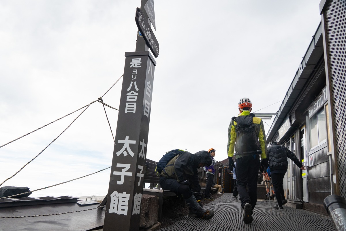 ジグザグの砂利道を越えれば七合目、ここから吉田ルートでは山小屋ラッシュが続きます。山小屋では、泊まらない方にも軽食やジュースの販売、金剛杖に焼印を押してくれたりと、辛い富士登山のオアシス的な場所。