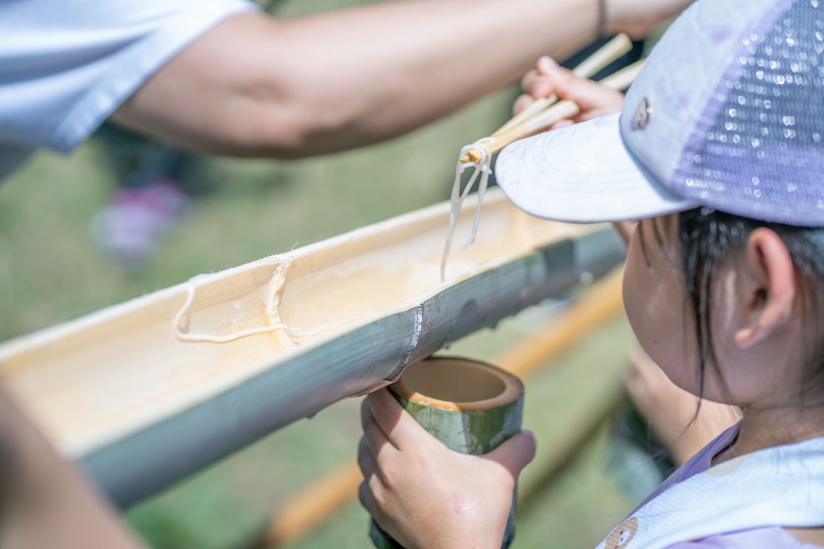 竹で本格的な流しそうめん