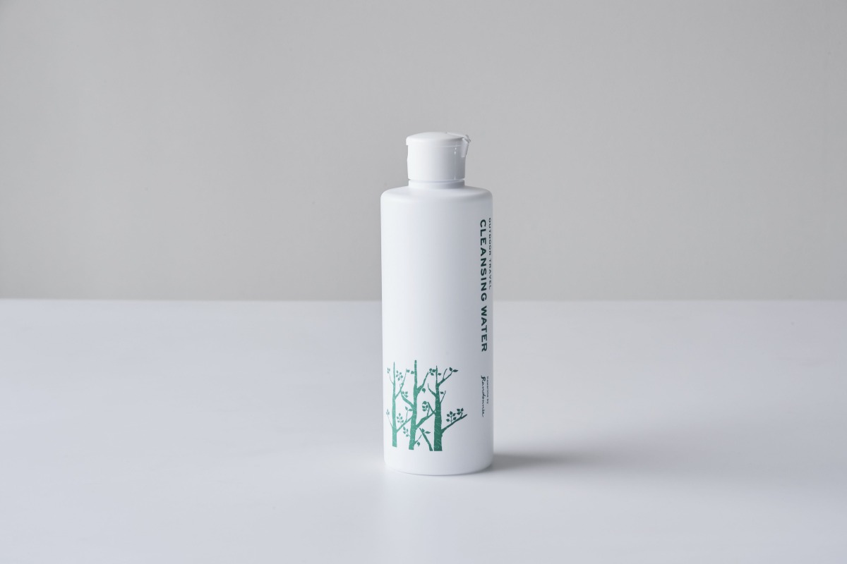 かわり芽のクレンジングウォーターは、まさに日常から使い続けられるもの。自宅の洗面所には290mlのボトルをそのまま置いて、毎晩使っている。山旅に出発する前は、宿泊する日数とおなじ数のコットンにクレンジングウォーターしみ込ませて、密閉式ビニール袋の中へ。