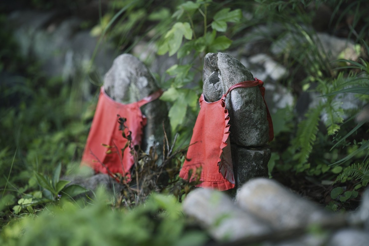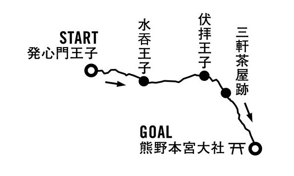 初日は発心門王子(ほっしんもんおうじ)から熊野本宮大社へと向かう約7㎞の道のり。発心門王子でお詣りをしてから山道へ入ると、ふわり。清らかな森の空気に包まれた。「次の王子は水呑王子(みずのみおうじ)ですね」。マップを片手に、新田さんが教えてくれた。熊野古道には熊野の神の御子神を祀った「○○王子」と呼ばれる神社や石碑があり、これらは総称して「九十九王子」と呼ばれている。巡礼者たちは、「王子」と「王子」をつなぎながら歩く。その道中でさまざまな願いが込められたお地蔵さまや、伝説が語り継がれる石や木とも出合う。