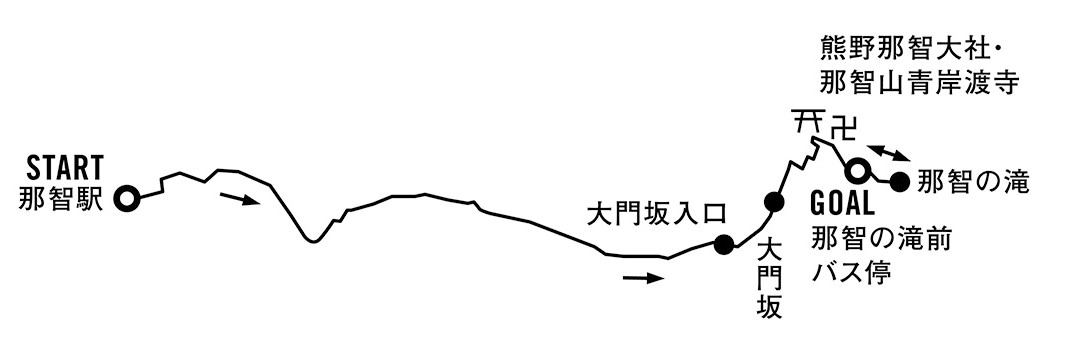 1 日目:紀伊田辺駅から発心門王子まで龍神バスで約2時間20分。湯の峰温泉から紀伊勝浦駅までは、熊野御坊南海バスで約1時間の新宮駅まで行き、JR 紀勢本線で約25 分。2日目:紀伊勝浦駅からJR 紀勢本線で那智駅まで約5分。バスもあり(熊野御坊南海バス・約10 分)