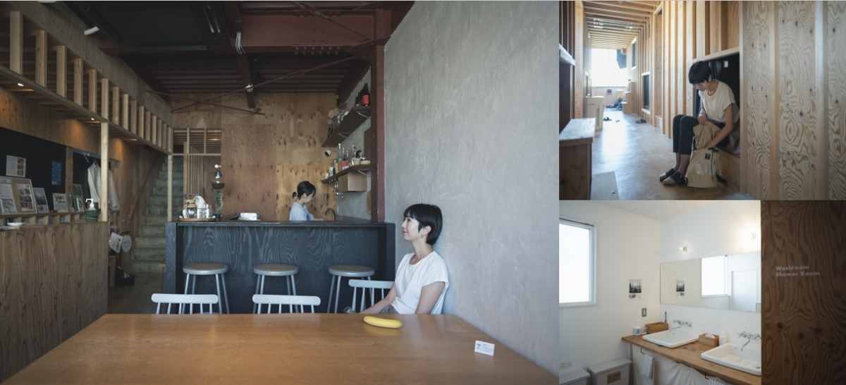 宿泊のみのシンプルなスタイルで、食事やお風呂は町をめぐることで、熊野の日常を知ってほしいという思いが込められている。ラウンジにはカフェ&バーが併設され、地元の方や宿泊者と交流が可能。
