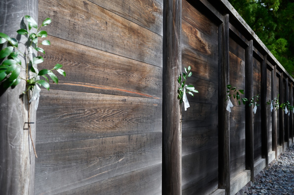 鳥居の前や、ご正宮を囲む垣にサカキの木がかけられていましたが、これは、「境の木」の言葉から転じたといわれていて、その先が神聖な場所だということをあらわしているのだとか。月に三度新しいものに取り替えられ、常に若々しいサカキになっているそうです。