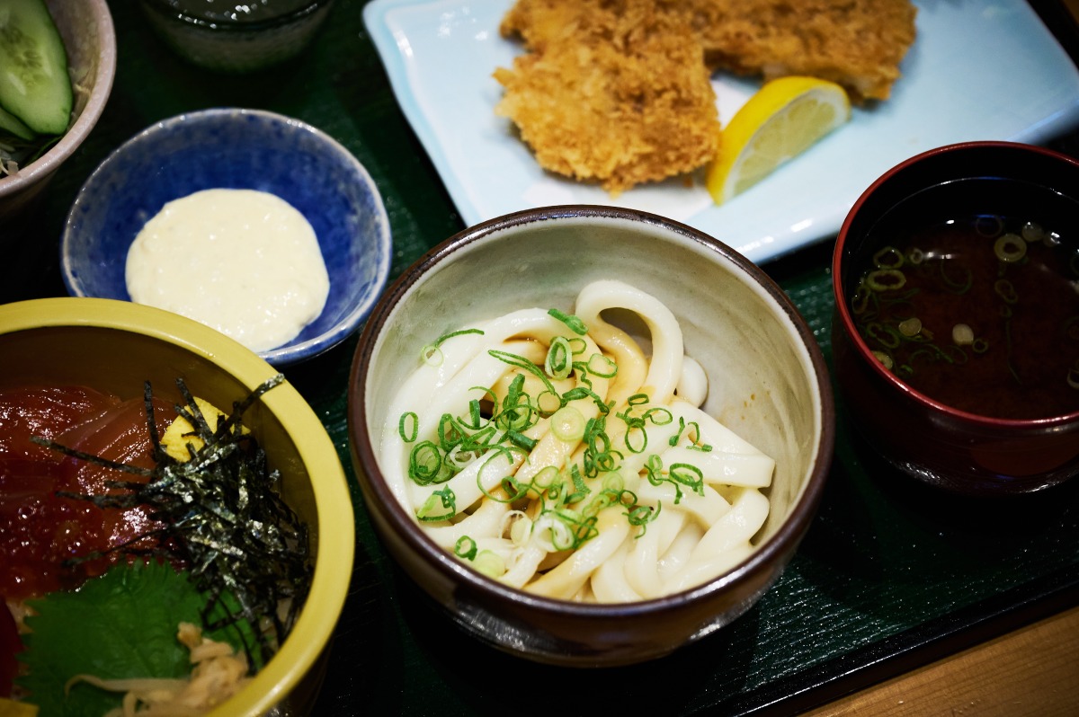 お昼ごはんをいただくために訪れたのは、伊勢志摩の郷土料理が食べられる「お食事処 桂 外宮」。特製醤油に漬け込んだマグロやタイをのせた桂風手こね寿司と、太くて柔らかい麺に濃厚なタレをかけた伊勢うどんのセットをいただきました!
