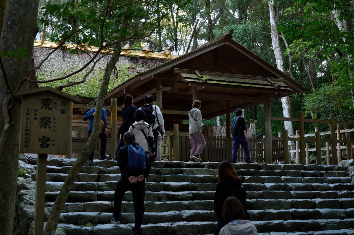 神宮が育てている田んぼで収穫されたお米が納められ、お米の神様が祀られているという「御稲御倉」や、古くは天皇以外から奉られたものが納められていた「外幣殿」について教えてもらいながら、天照大御神の活動的で積極的な荒御魂を祀っている荒祭宮へお参りをして帰路につきます。