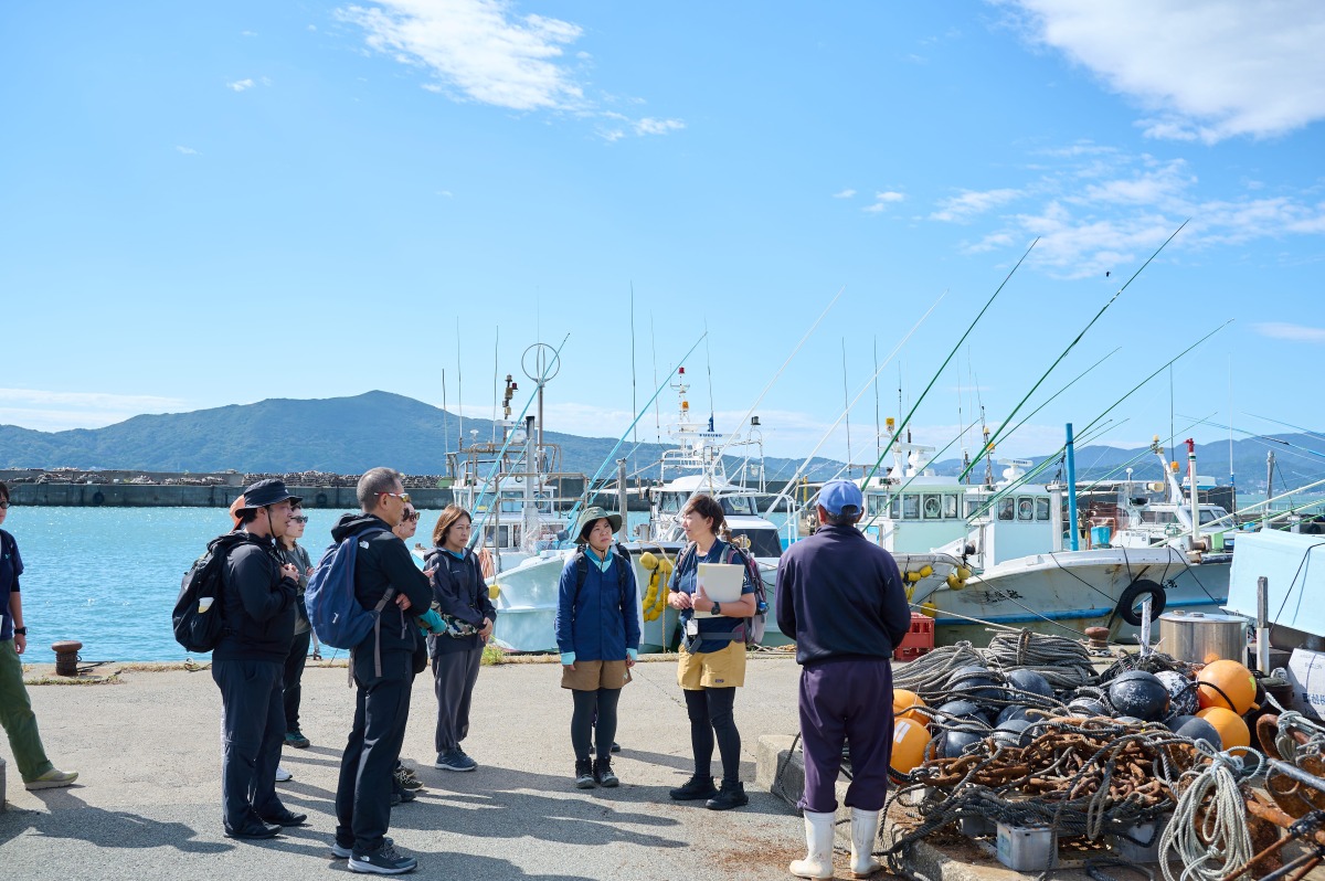 朝食をいただいたら、鳥羽マリンターミナルへ。ここから船に乗り、鳥羽湾最大の島である答志島に向かいます。案内してくれたのは、鳥羽の自然と暮らしを体験できるエコツアーやアクティビティガイドを行なう「海島遊民くらぶ」のきくさんときえさん。
