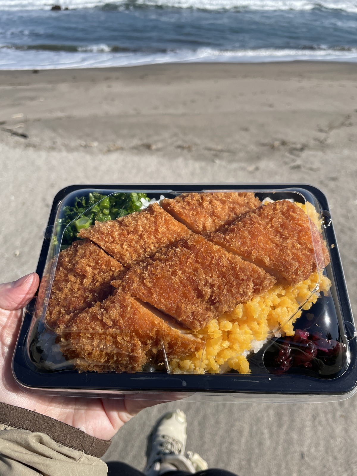 下山後はそのまま海へ向かい、道の駅「和田浦WA・O!」で人気のお弁当(このときはイカフライ/660円)を調達。ほかにも、地元の採れたて野菜や海産物、和田浦ならではのクジラの加工品なども並び、お土産選びも楽しめる場所です。山を歩いて、海でランチ。なんともぜいたくな1日は、長い冬の寒さを忘れさせてくれるはずです。