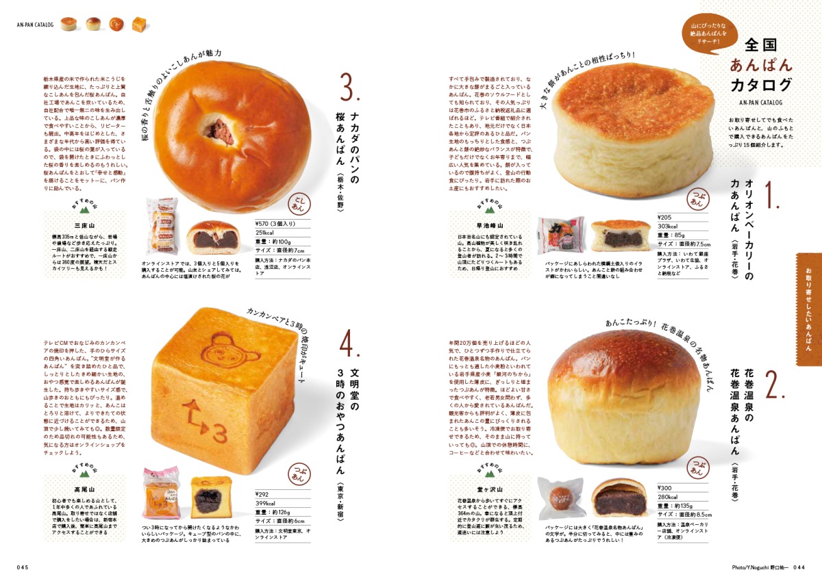 ▲全国各地のあんぱんを集めました!お取り寄せしてでも食べたいあんぱんと、山のふもとで買いたいあんぱん全15種を披露。包装や断面、カロリーなど、気になる情報が満載のあんぱんカタログ。あんぱんを持って歩きたい山もともにご紹介しています!