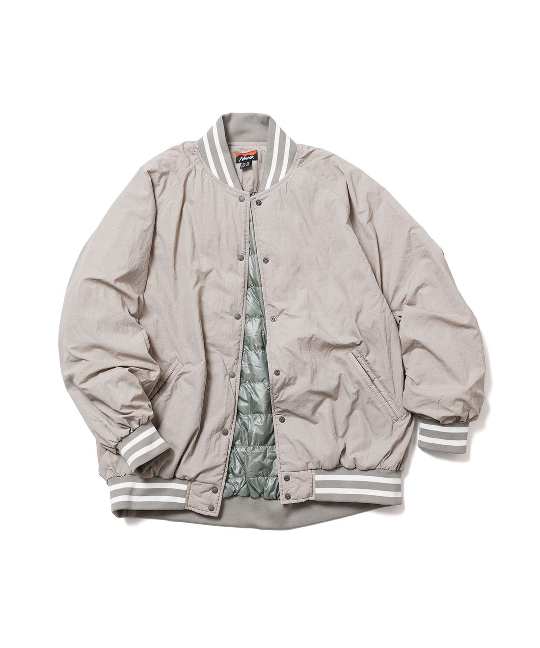 スポーティなデザインのスタジャンをベースにしたブルゾン。フロントはダブルジッパー仕様で、上からも下からもジッパーを開け閉めできるので、スタイリングの幅が広がる。