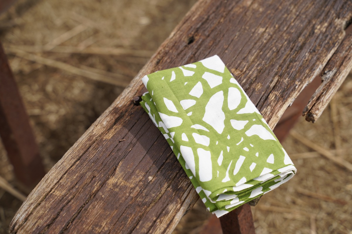 手ぬぐい全面にわしゃわしゃ~と広がっている“草むら”を連想させる緑色が、なんともおしゃれで、グッと惹かれるデザインなのです。
