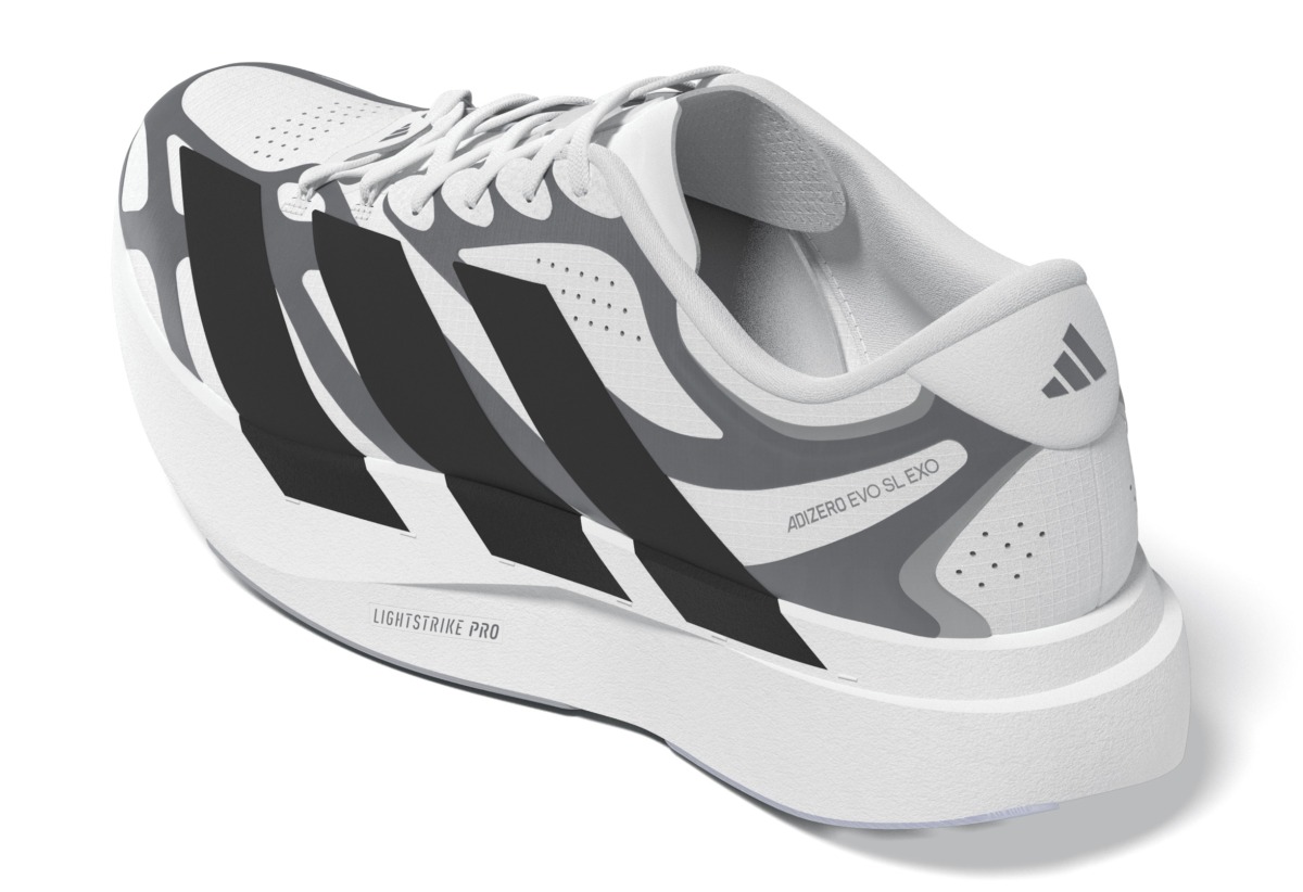 Adizero EVO SL EXO Shoesは、スピードモデルに求められる軽快さを土台にしながら、フィット性をさらに高めたのがポイント。精密なフィットを実現するEXOSKELETON fit systemが足を的確に支え、woven shellが足全体を包み込むことで、テンポよく走りたい日にも安心感のある履き心地をもたらしてくれる。自己ベストを狙うランから、少しペースを落として気持ちよく走りたい日まで、幅広いランニング・スタイルに寄り添う仕上がりだ。