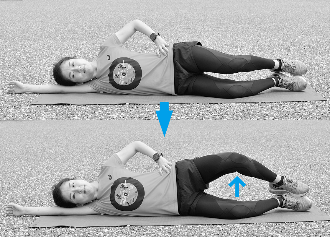 走りの安定性を高める内転筋トレ(左右5回)