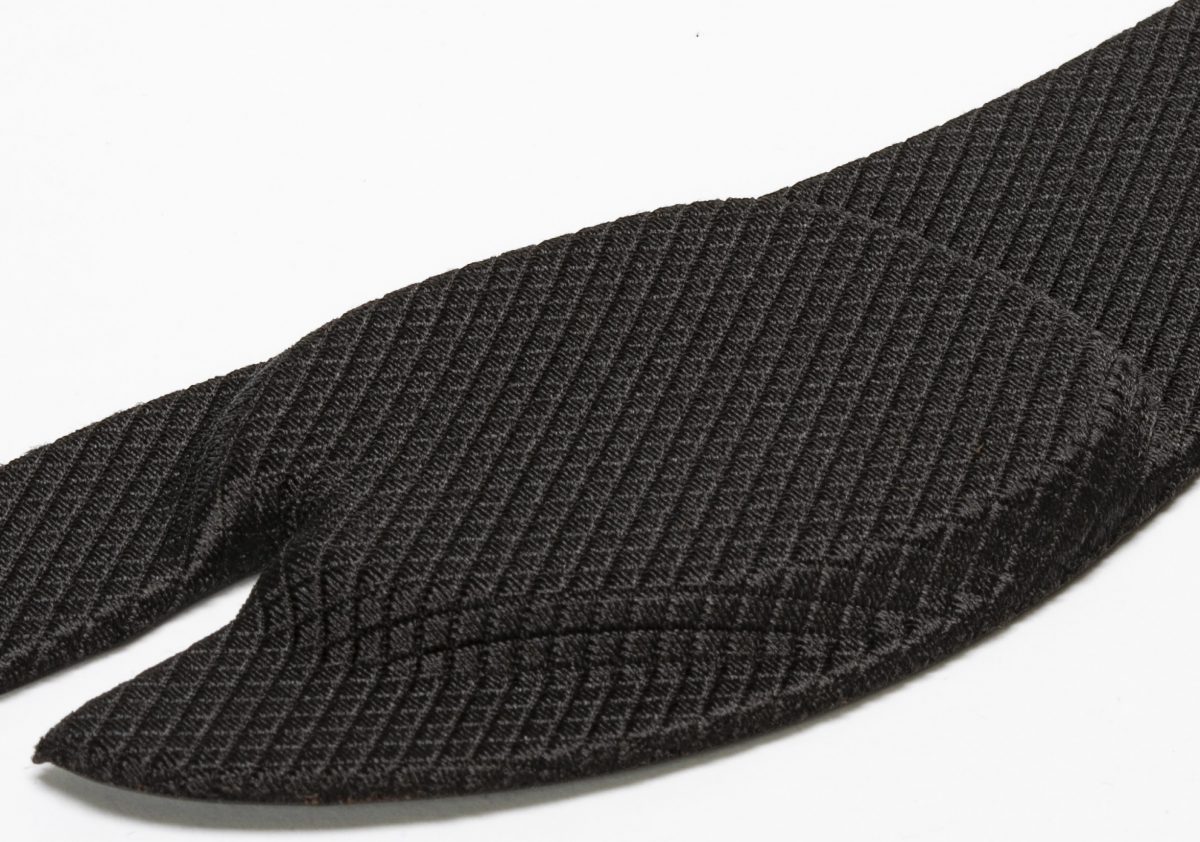 2.足袋型で「馳(はせ)」を採用。左右くるぶしの高さが違う独特なデザイン。