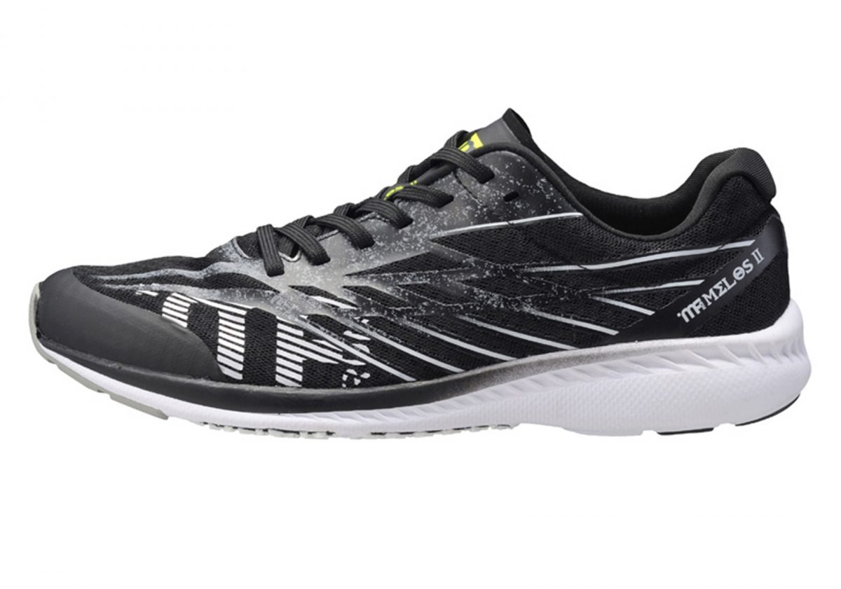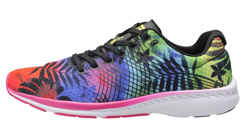 ラインナップは2タイプ5色。前足部には、推進力を無駄なく地面へ伝える樹脂スパイクラバーソールを搭載した「MELOS 2」は、片足180g(26.5cm時)で陸上競技場のトラックにも対応。いっぽう、スムースな踏み蹴りを生み出す軽量ラバーを前足部に搭載した「ITEN 2」は、片足190g(26.5cm時)で、ファッションにもこだわりポップなボタニカル柄を採用している。