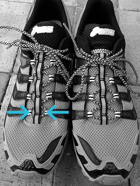 つま先に近い一列目だけキツく締めます。二列目からはキツすぎず、ユルくなりすぎないように締めましょう。すると、指同士の擦れが劇的に軽減され、マメができにくくなりますよ!
