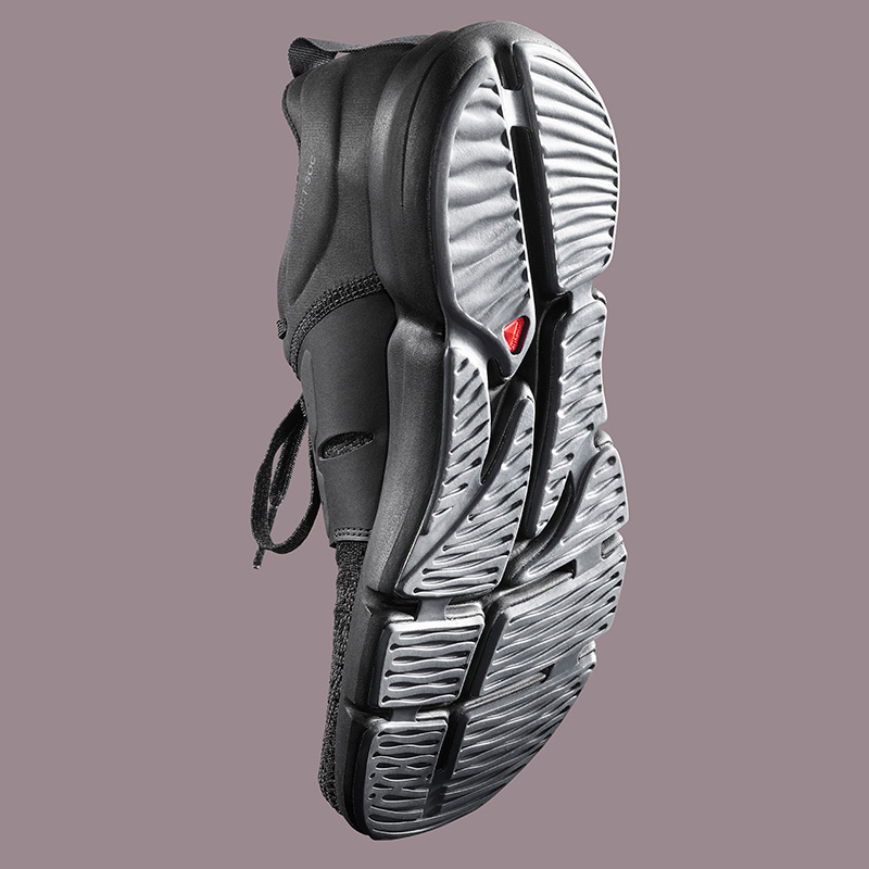 脚の主要関節のマッピングをもとに開発された、10個の独立したボトムユニット。靴底が足の動きに連動することで、筋肉や腱の曲げ伸ばしに掛かるストレスを最小限に抑え、痛みやケガのリスクを軽減してくれる。
