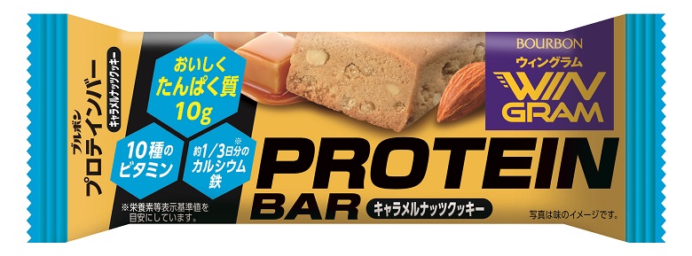 ブルボンのスポーツ栄養プログラム“ウィングラム”シリーズの「プロテインバーチョコレートクッキー(WG)」と「プロテインバーキャラメルナッツクッキー(WG)」の2品をリニューアル。