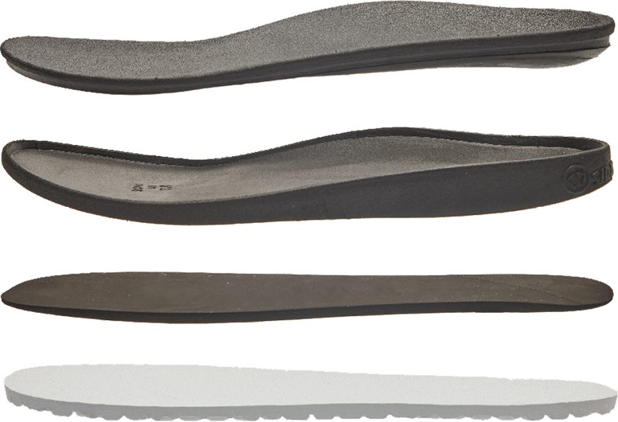 カカトを安定させ、足にかかる圧力を分散させるためソール部分は硬さの異なる4層構造に。 足に直に当たるトップソールは肌触りがよく、その下を支えるクッションソールは衝撃吸収と耐久性に優れ、アウトソールは高いグリップ力を発揮する。 さらに、シダス独自の立体形状が足元から崩れた体軸バランスを整えてくれる。 この立体形状と4層構造が足裏から筋肉や血流にも作用することでリカバリーを促進してくれる。