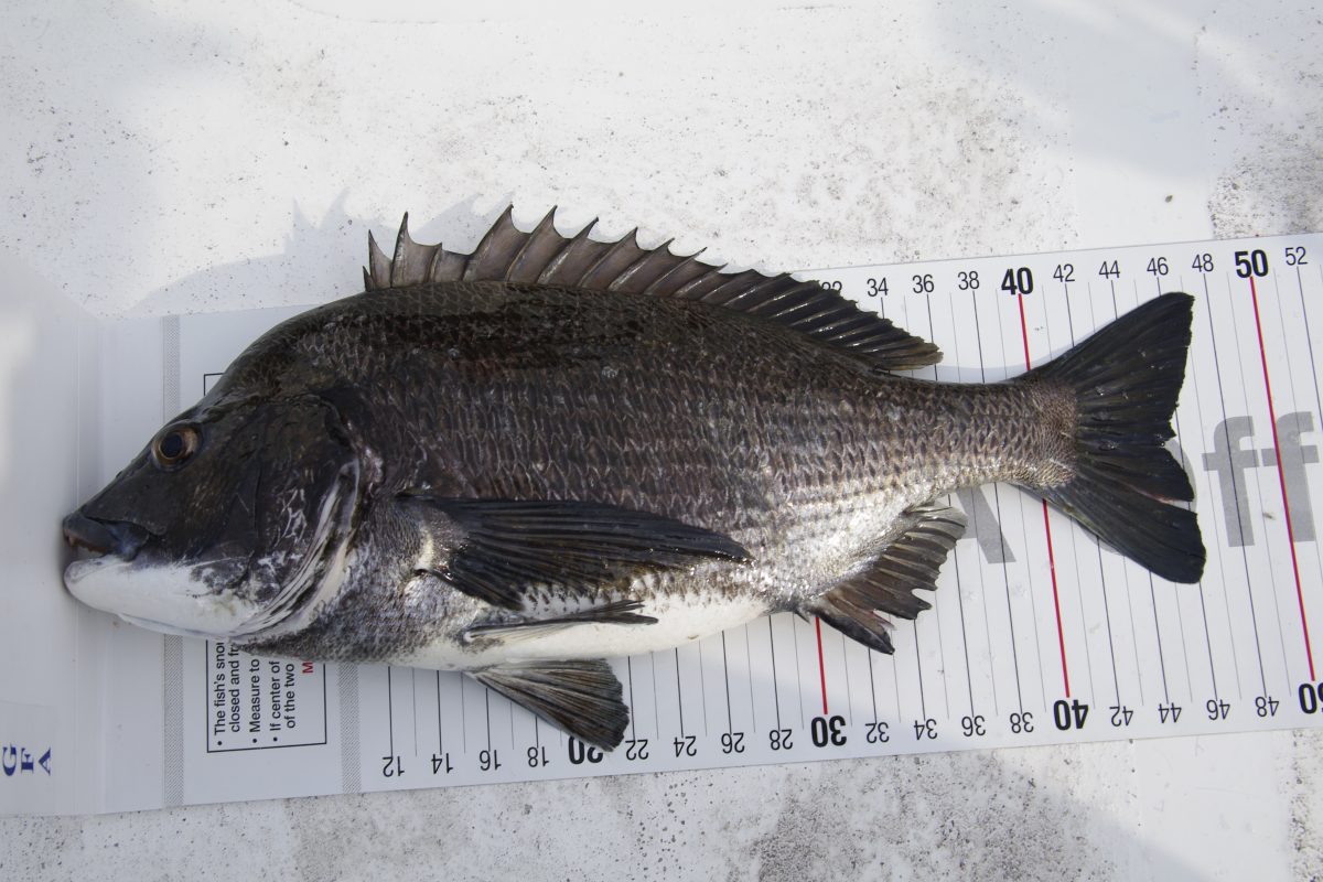 まず、長さを測る方法ですが、正式にやるならきれいに伸ばしたメジャーの上に魚をまっすぐに置き、口を閉じ、尾びれを開いた状態で測るのが基本。いわゆる「口閉じ尾開き」という状態です。