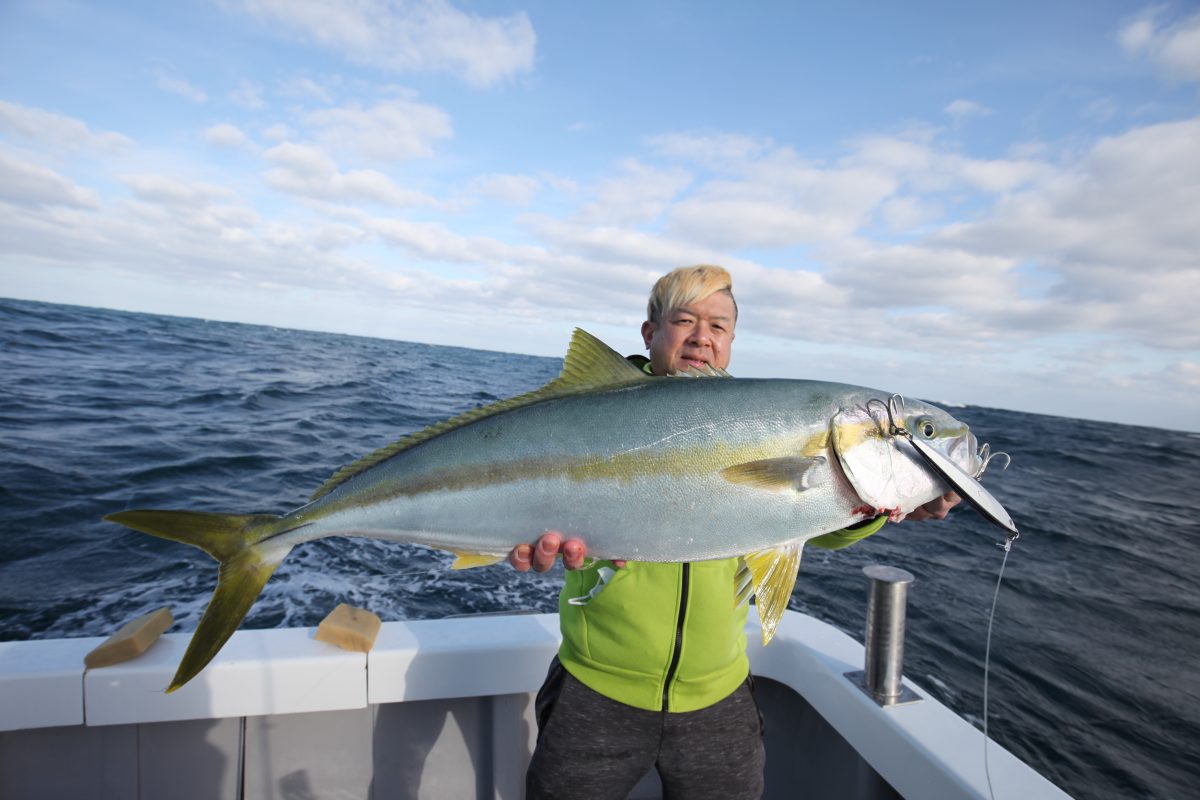 最初のポイントが高活性だったため期待が高まったが、その後のポイントではダイビングペンシルに出てくるもののバイトが的外れな場合が多く、フッキングまで持ち込むのに苦戦するという、春によくあるパターンであった。ただそんななかでも参加者はヒラマサキャスティングに精通した方にはバイトが多く、20kgを超すサイズのバイトもあった。