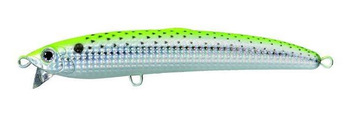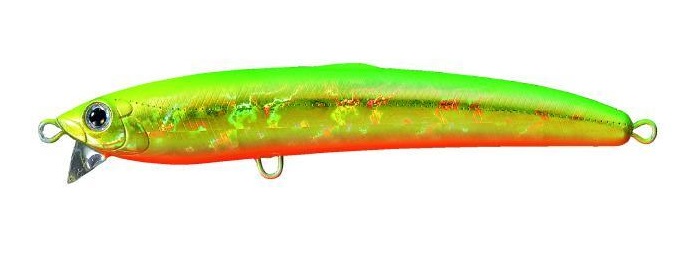 なお、カラーはレッドヘッド(カラーコード01)、メッキイワシ(02)、レンズイワシ(03)、カタクチシェル(04)、レンズブルピン(05)、イナッコ(06)、レンズボラ(07)、スラッシュコノシロ(08)、チャートコノシロ(09)、パールチャート(10)、チャートライムゴールド(11)、ゴーストマーブル(12)、チャートレンズマーブル(13)、レッドアイビス(14)の14色を展開。ベイトフィッシュや水色に合わせやすいラインナップとなっている。
