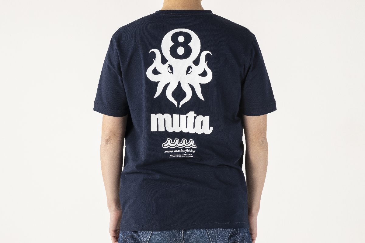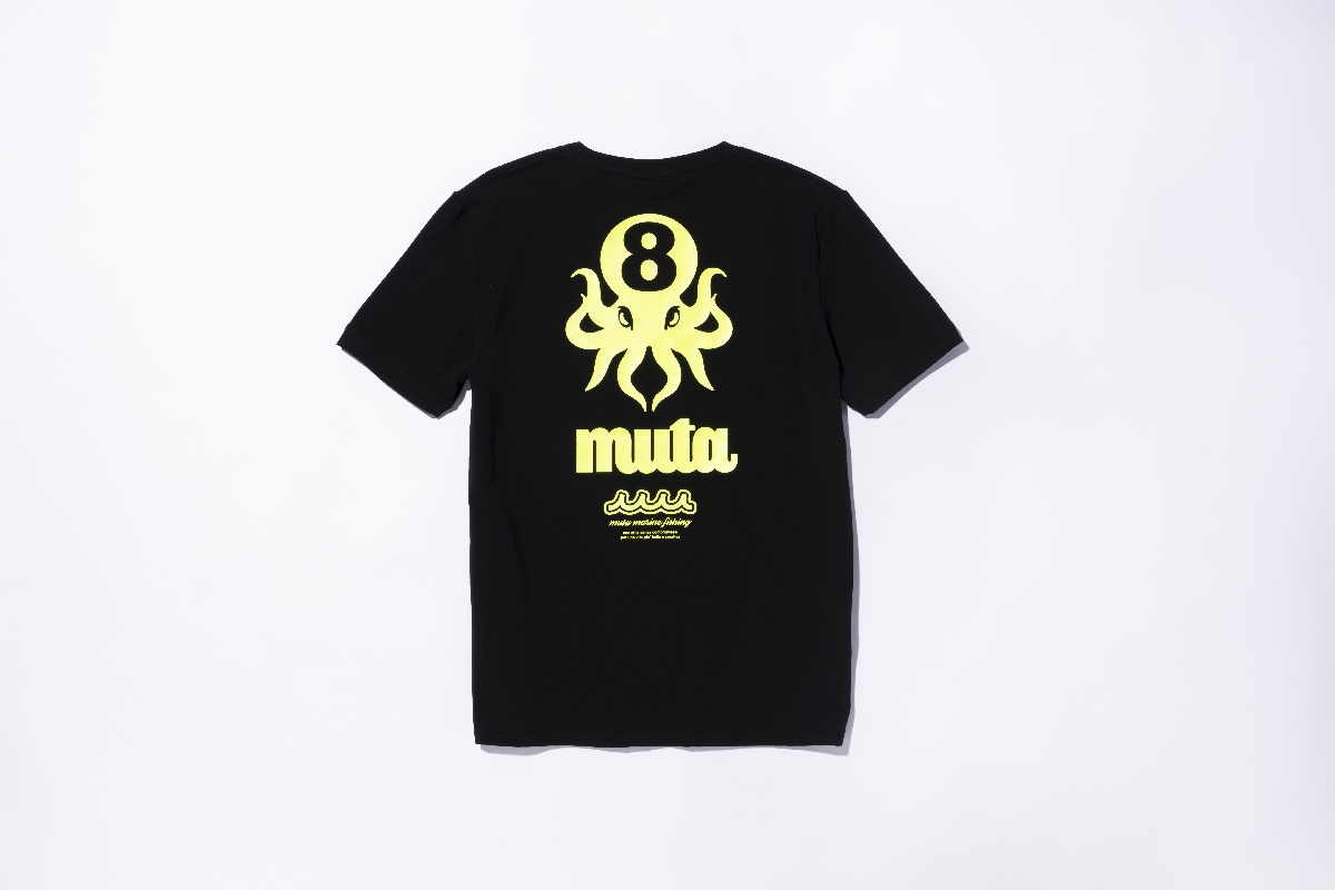 8本の足を巧みに使い、獲物を捕獲する「タコ」をモチーフにし、そのタコの捕獲能力の高さをルアーアングラーに例えた。バックに大きくタコとmutaのラッキーナンバーの「8」のイラストを配した。フロントは、新ロゴのスクエアウェーブをワンポイントであしらったシンプルなデザイン。ボディはストレッチ素材でフィット感があり、着心地は最高だ。