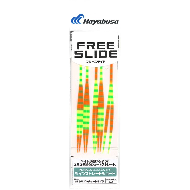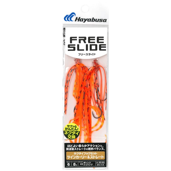 躍動感でアピールする『ツインカーリースリム』と絶妙なアピールの『ストレートスリム』を合わせたフックセット。No.4、5、6は『ホロフラッシュネクタイ』搭載。